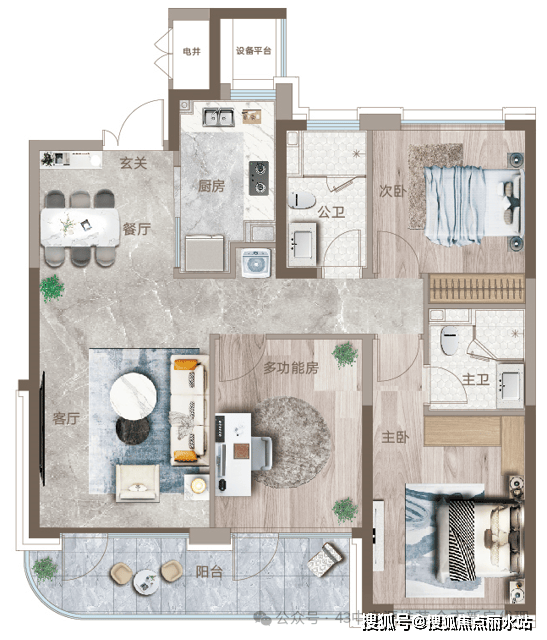 B户型·知亭,建筑面积125㎡,三室两厅两卫。