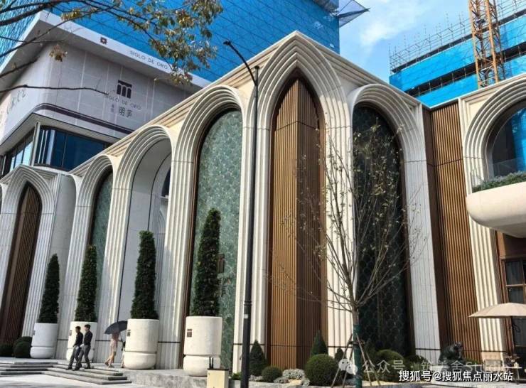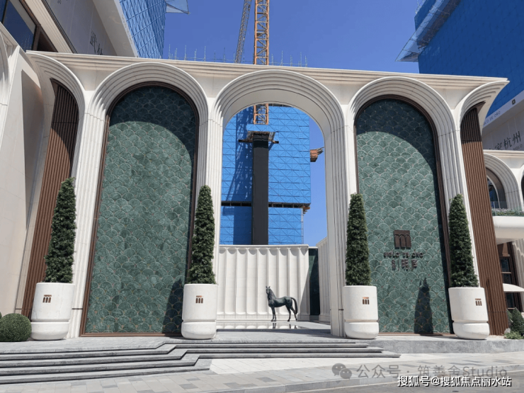 在开发商普遍比拼大门宽度的背景下,这个项目可算另辟蹊径,卷出了“新高度”。咏印明庐示范区的大门高度达到约12米,在杭州市场上堪称独树一帜。