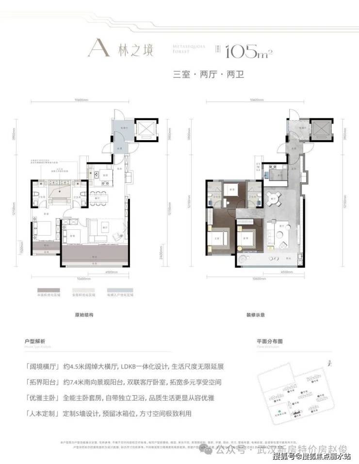 🏆户型赏析🔥林之境 | 约105㎡三室两厅两卫(1号楼)售楼处电话400-8787-098接通后输入5678【营销中心】