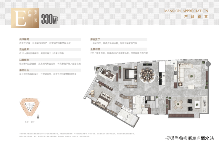 楼层状况:项目包括2栋塔楼住宅和1栋裙楼,其中1—11层为奢侈品商场、餐饮、德基美术馆。西塔楼12-21层,面积段为116㎡,136㎡,160㎡3种户型,23-57层为每层13户,面积段为116㎡,136㎡,160㎡,252㎡4种户型,58-60层为330㎡每层6户。