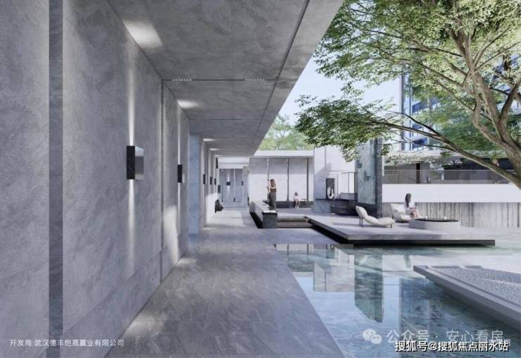 松弛感:中心“水瀑光院”水波荡漾,心绪自轻松