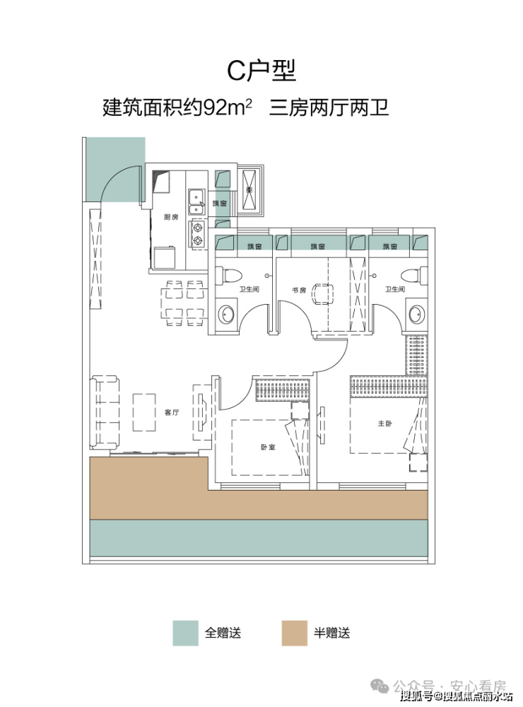 精研实用空间与享受空间的比例,实现户型空间高赠送,所见即所得