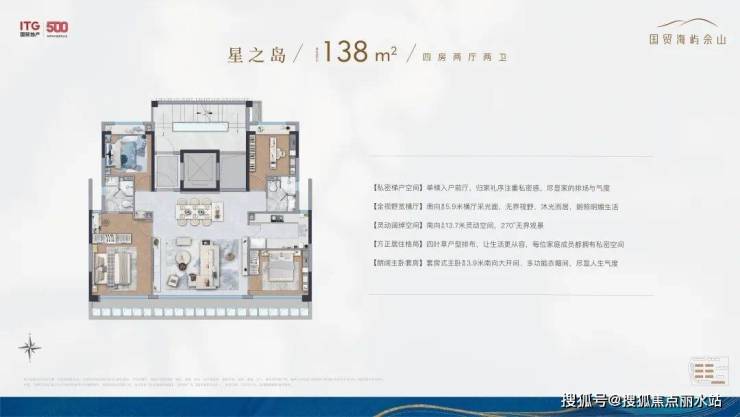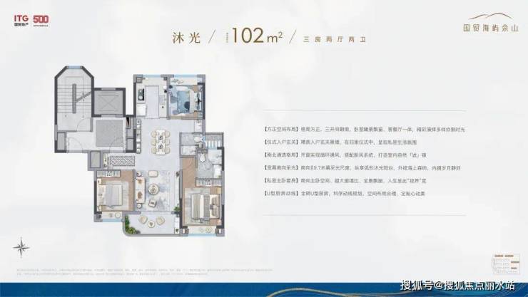 市面上大多百平小三房,都是“伪”三房,实际使用起来空间十分局促。国贸海屿佘山户型设计优点:客厅阳台约270度采光体系+南向双飘窗+北房间也能够作成卧室,无连廊的飞机户型,整体的得房率做到了78-80%。