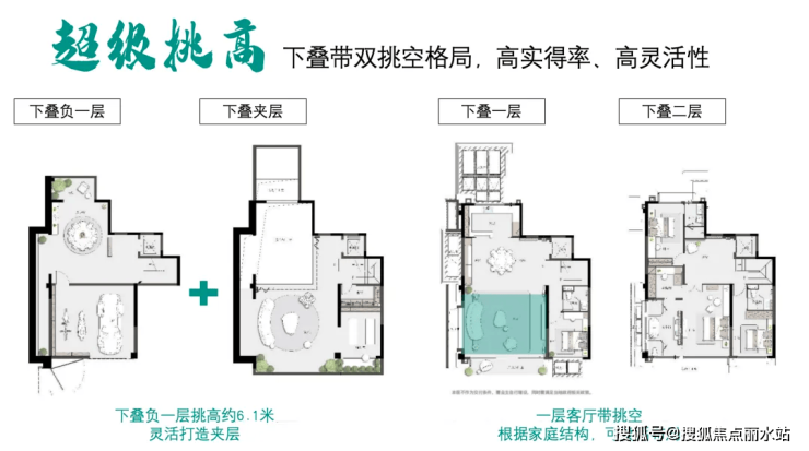 区域内首创地下室6.1米挑高:地下夹层自此不再压抑,同步4个采光井设计,无需为采光通风问题担忧,让地下室真正成为生活功能空间。
