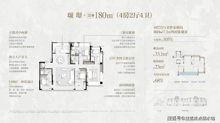 项目通过创新设计实现得房率98.7%-105%的突破,其中建面约180㎡户型赠送面积达约33.1㎡,在古城核心区堪称"空间奇迹"。