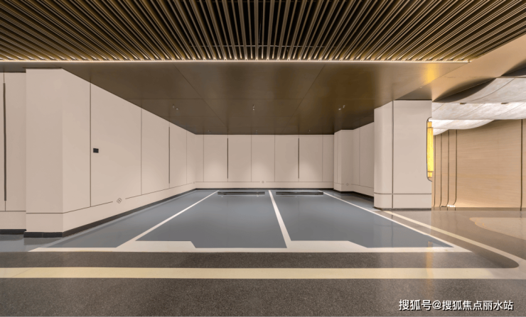 地库空间,全部采用全铝板吊顶与水磨石车道,在苏州是首度出现,定义豪邸基底。