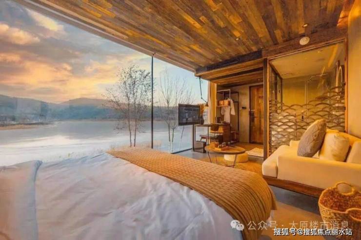 占地400亩,共有18座造型独特的“地球仓”,包括3个功能仓:行政前台、野色餐厅、360°全景咖啡厅,以及15座客房,其中,9座位于崖边,6座位于湖畔,可俯瞰璀璨城市灯火,亦可静享湖畔微风。