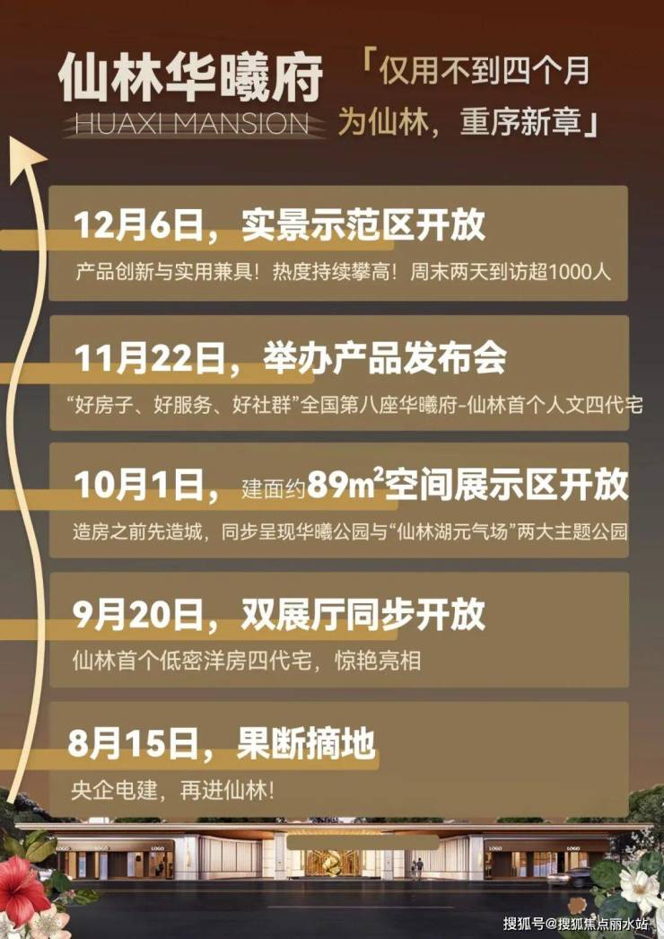 8月份央企电建落子、9月份双展厅开放、10月份展示区开放并同步呈现“华曦公园”与“仙林湖元气场”两大主题公园、11月份产品发布会对项目深度诠释、12月份实景示范区正式公开,将理想中的人居标杆一比一还原落定……