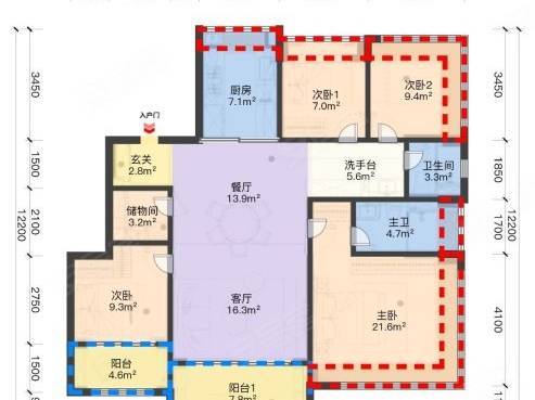 建面约 139㎡四房两厅两卫:总价 1850-2150 万,5.2 米超宽横厅,进深 6.65 米,搭配全明电梯厅与双阳台设计,赠送面积近 20㎡,实得率超 95%,特设 “X 空间” 可改造为书房、儿童游乐区或储物间,空间灵活性拉满。