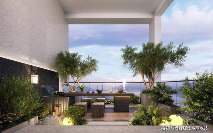 约31㎡空中花园:将花园搬到空中,先生社交、父母下棋、太太下午茶、孩子捉迷藏,阖家意趣一院尽揽。