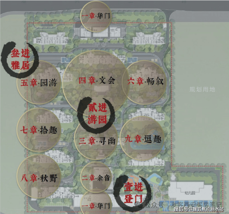 项目溯源中国古代文史第一“西园雅集”,以《西园雅集图》中文人雅士的生活场景为蓝本,建筑灵感取源宋式建筑典籍《营造法式》,遵循自然人文,以现代手法演绎,在曲水泉池、石径疏影、茂林修竹之间构筑“三进九章”宋风园境,通过多场景组合形成一副多视点、多散点的山水画卷。