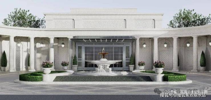 外立面效果图如下,“四坡两折”轻盈形制,270°转角开合,华贵气韵。