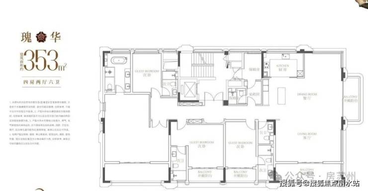 一梯一户,4房4卫,由于北房间近邻次卫,全屋相当于类4套房。