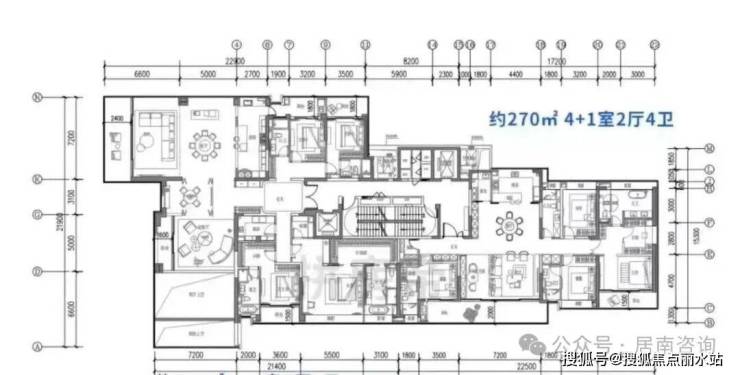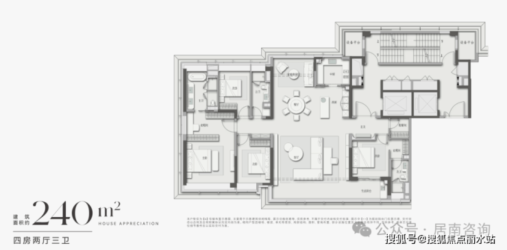 建面约270㎡户型,在空间布局上堪称建面约240㎡户型的“放大版”——