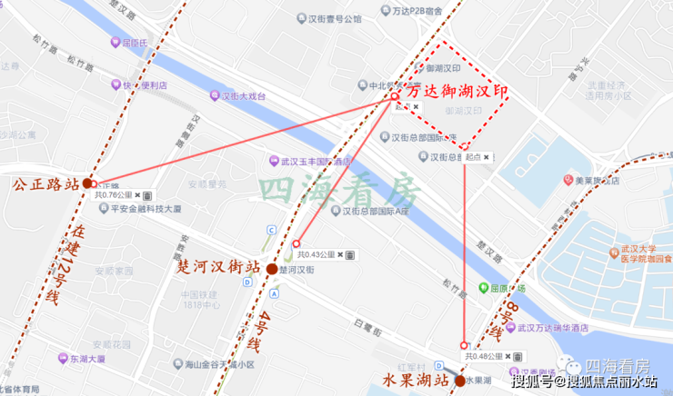 地铁:项目周边有3条地铁,4号线楚河汉街站、8号线水果湖站、12号线公正路站,距离分别是400多米、500米、700米,都在步行氛围内。