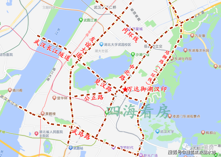 万达御湖汉印位于楚汉路与中北路交汇处以东,楼市划分属于中北路板块,行政划分属于武昌区,内环线上。