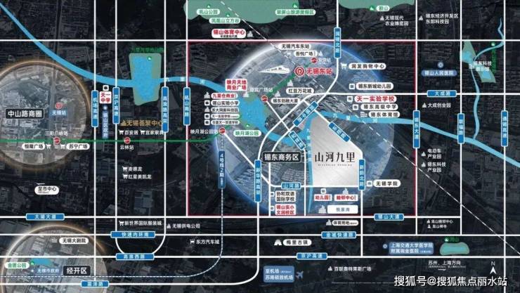 锡东新城,无锡五大新城之一,未来将成为无锡城市副中心、锡山行政文化商务中心以及苏南区域客运枢纽,是联系京沪、长三角一体化的门户窗口。