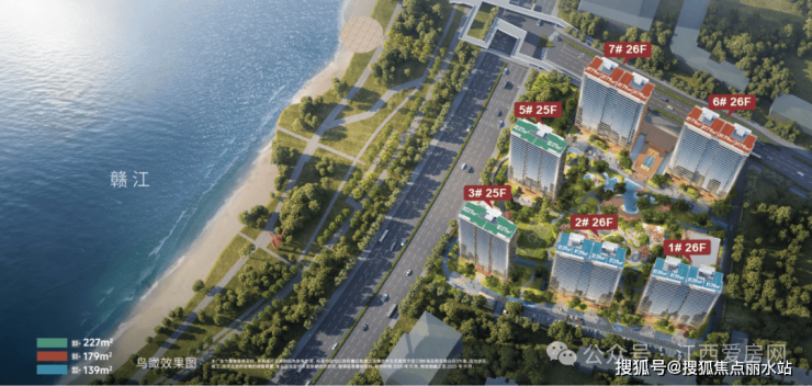 主力户型 有139㎡、179㎡、227㎡,右戳查看👉户型图。部分户型搭配曲面玻璃,实现最大 270° 瞰江,消除视觉断点,不管是起居、用餐还是会客,都能被赣江风光包裹,并采用围合式错落布局,达到栋栋瞰江平权。