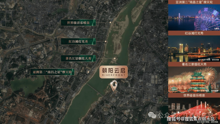该项目江景够顶!江景豪宅也分三六九等,朝阳云启可以说真正一线亲江,与江滩公园仅一路之隔,举步就能抵达约 135 万㎡的滨江景观带(相当于 200 个标准足球场),推窗就能看到南昌之星摩天轮、红谷滩灯光秀、江景烟花大秀和世界级音乐喷泉,有地标级夜景的加持,晚上的景观比白天更震撼。