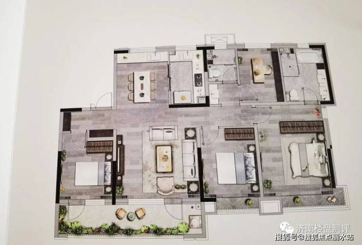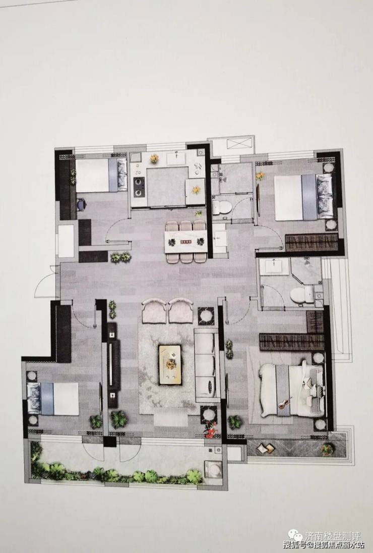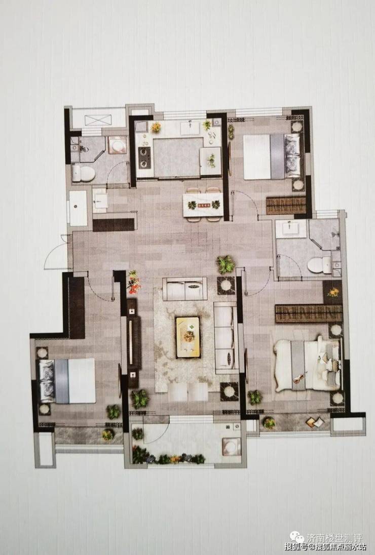 143户型南向四面宽,无论采光还是通风都更胜一筹,南向双阳台,三个南卧朝阳,户型还是比较优质的。