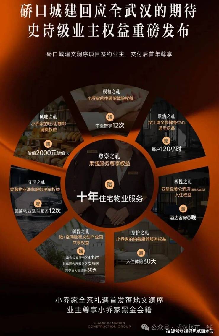 作为有全域资源整合能力的企业,项目还为业主准备了多项硚口城建集团旗下产业的专属权益。项目由硚口城建集团旗下的物业公司服务,为了配合项目首开,同步为首批业主赠送十年住宅物业服务!同时还有硚口城建集团旗下其他重磅权益相送,如四星级酒店入住权益、洗车服务等等!
