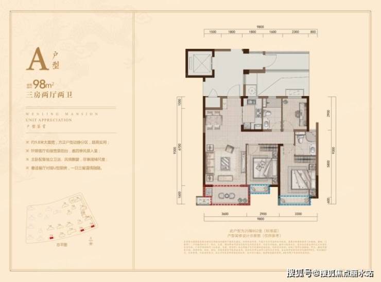 主力户型:3居(建面98㎡) 3居(建面110㎡) 4居(建面129㎡)