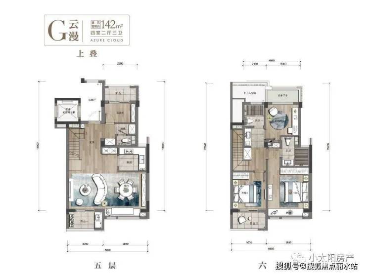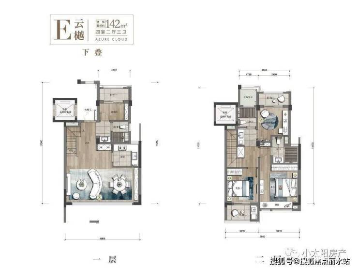 ③建筑面积约142㎡叠墅,上下双境,自成天地,一层开放式共融家庭剧场,二层静谧人居休憩区,约6.8米大尺度横向餐客厅,营造全家人共鸣的生活场景,营造无界生活。