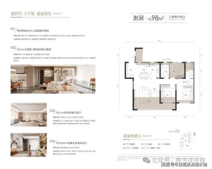 ——超四代户型:负公摊+超四代住宅大平板,得房率超105%+