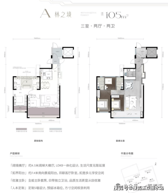 其中,最小建面约105平的大三房,让你首次置业就有改善的尺度。