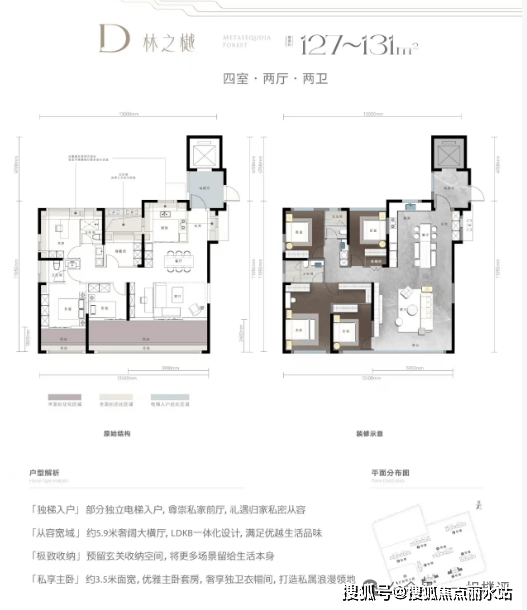 建面约127-130平的四房则用改善户型面积实现大平层的越级空间体验。