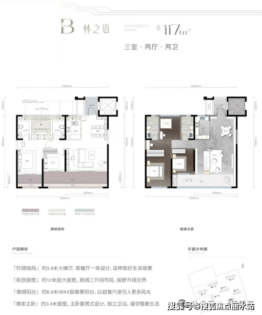 建面约117平阔绰三房,拒绝拥挤,实用且舒适。