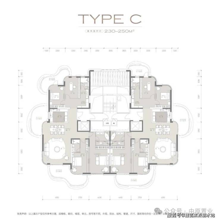 【产品面积】①220-230㎡、②230-250㎡、③300-325㎡、④500-520㎡毛坯交付