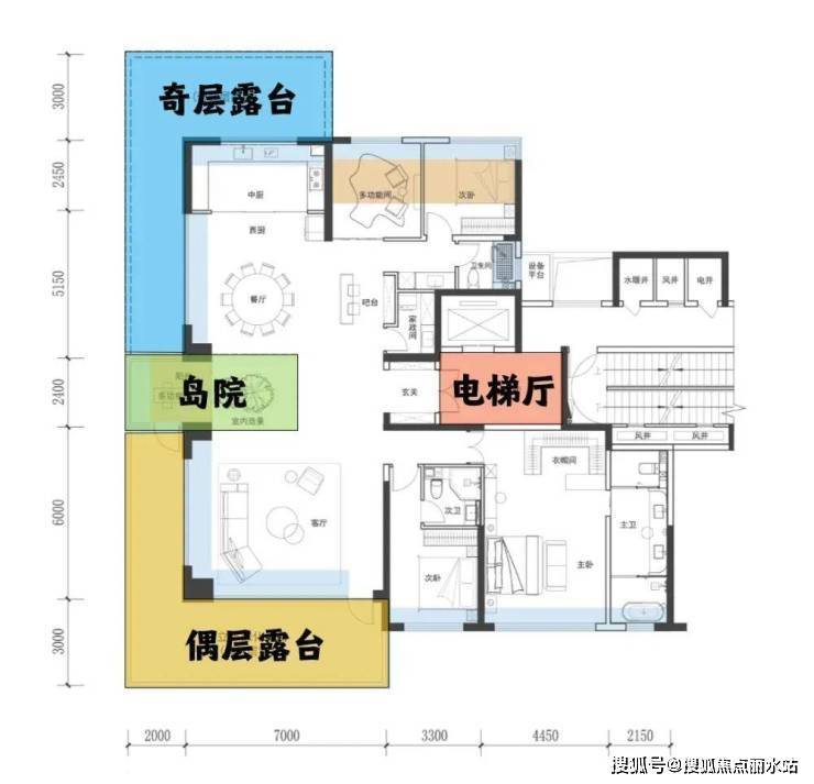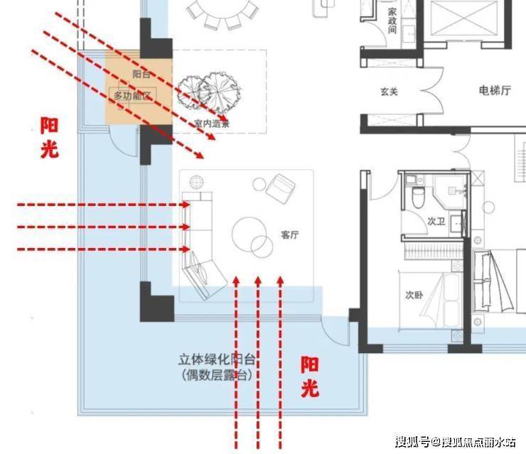 奇层露台则位于北侧,与餐厅、厨房紧密相连。
