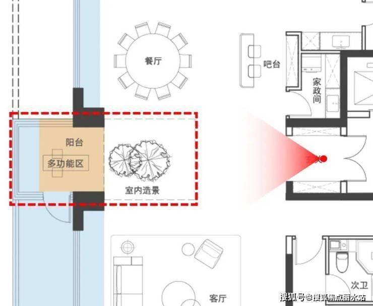 相较于普通阳台更加低调隐蔽,且具备更大的进深尺度。
