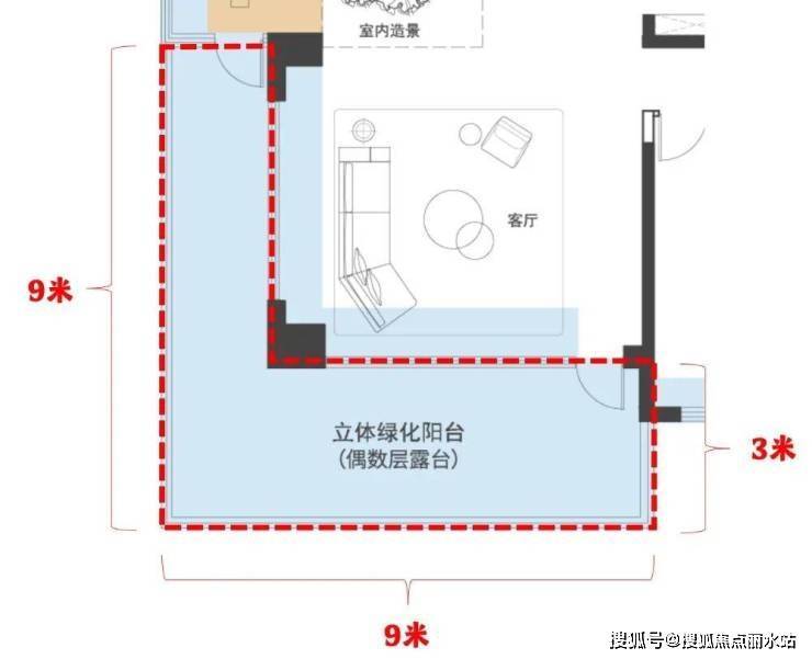 要知道,普通四代宅的露台进深仅有2.4米,增加0.6米将会极尽扩大露台面积