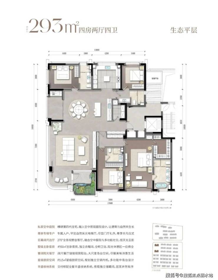 南区两幢高层面积为293平,户型如下。