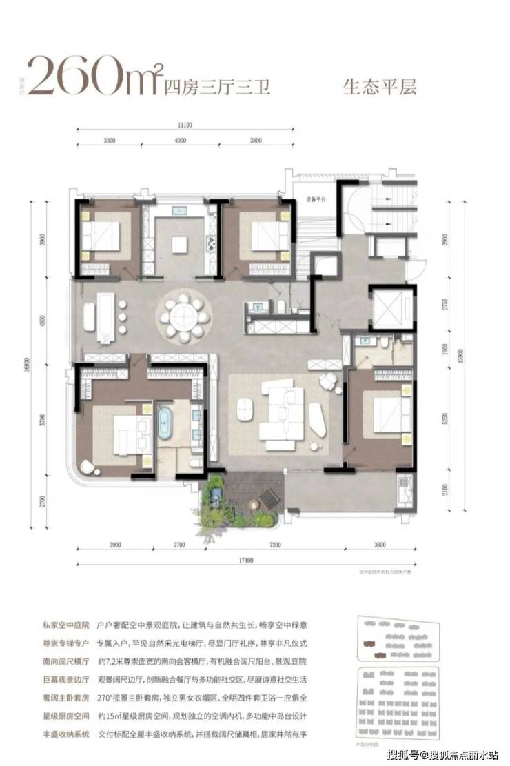北区43/46#高层面积为260平。这个户型客厅餐厅不在一条线上,动线上有点别扭,这也导致客餐厅整体的尺度感下降。