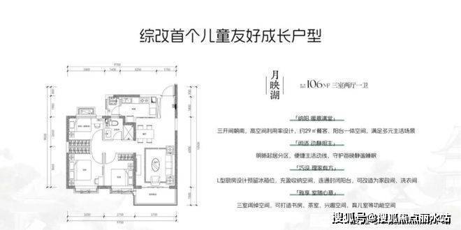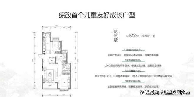 花语雅颂102平三居。小三居户型设计,南北通透,动静分离,两个卧室朝北,客厅主卧朝南,有封闭阳台。客厅开间3.7米。北侧无连廊。