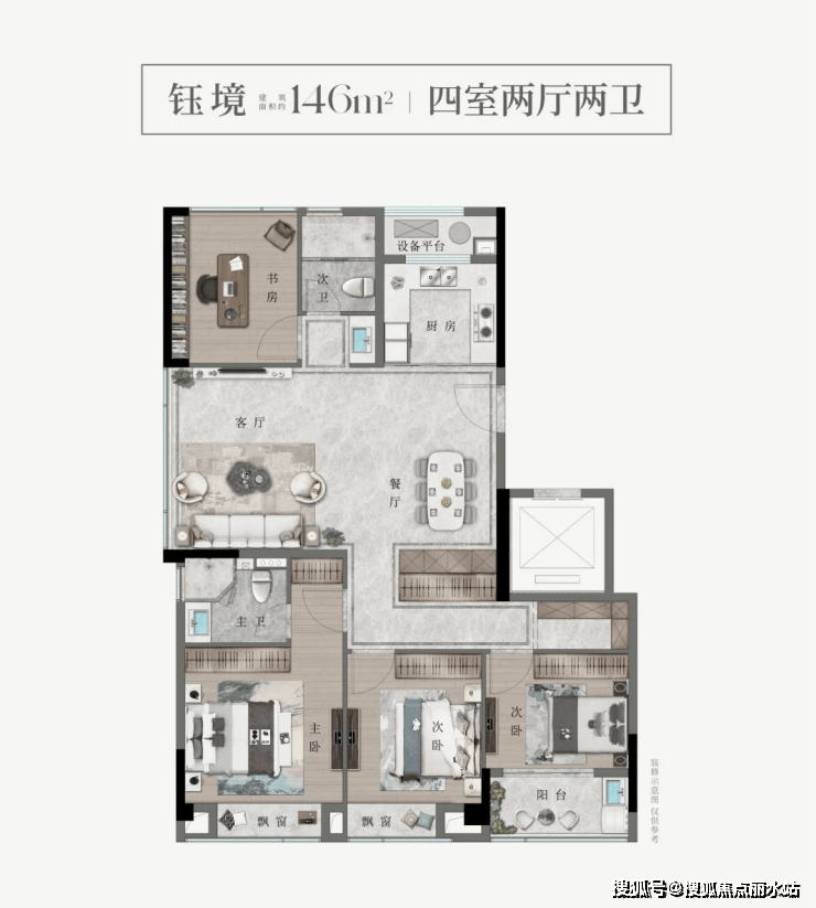 如此用心的小区设计,必然也能呈现不俗的产品打造。建投·方台悦府目前在售户型为建面约128-146㎡三房、四房产品,为全盘改善型。开阔的尺度,让多代同堂的居住习惯得到延续。