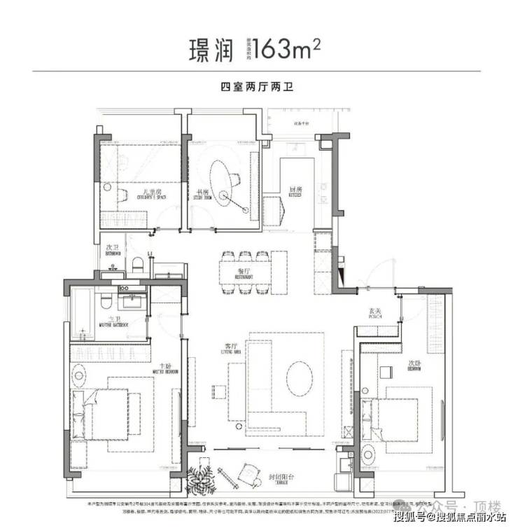 建筑面积约141-163㎡精装四房,LDKG一体化设计,超尺宽幕阳台,三大件齐备,甄选品牌打造精质空间,南区尊席时代献映。
