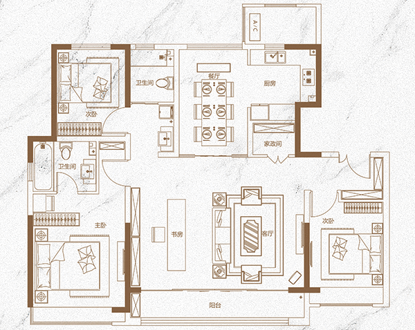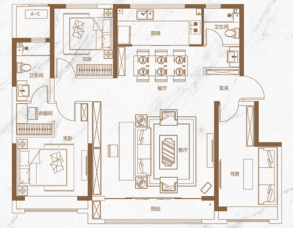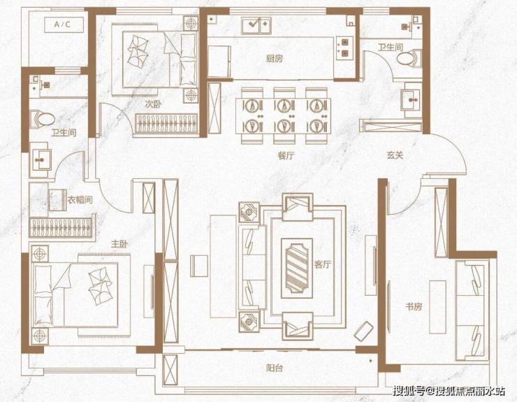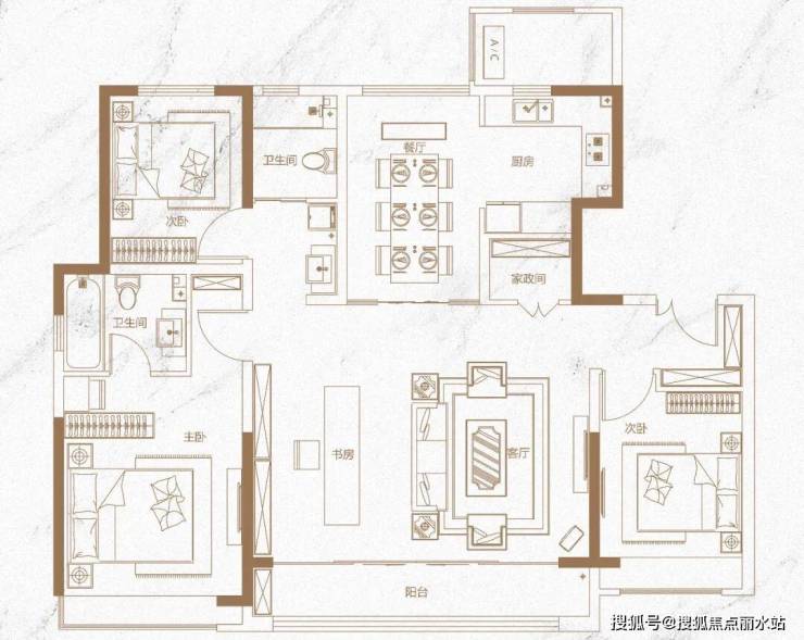 中央的客餐厅就很像四合院的“院子”,卧室则是东西厢房。