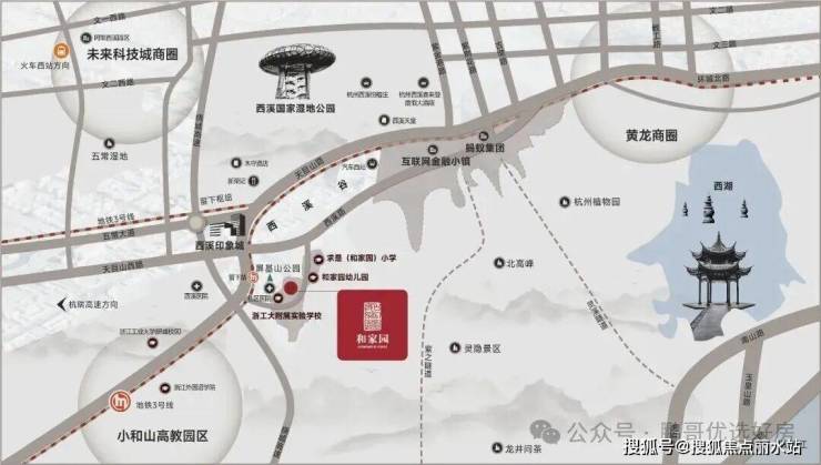 地处西湖和西溪湿地两大国家5A级风景区之间,北隔天目山路与西溪湿地风景区相望,南与西湖风景区隔群山相连,兼得都市烟火与自然静谧。