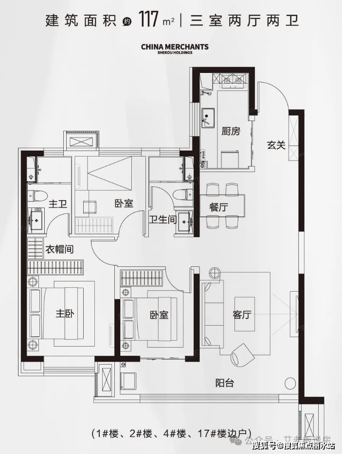 总体来讲,除了117户型是外开入户门以外,这三个户型的格局几乎一致,只是在各个空间的尺度上有所不同,想买哪个户型看自己的需求就好。